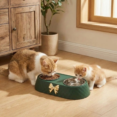 - Gamelle pour chat double et inclinée : idéale pour servir croquettes et eau